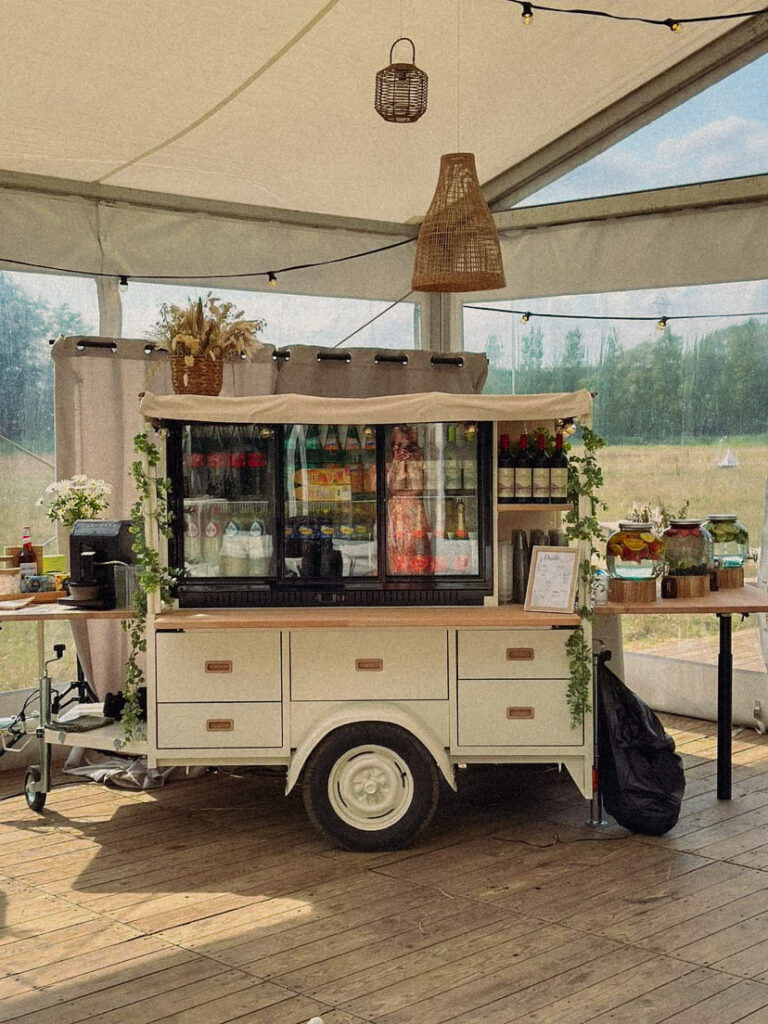 Het is een unieke manier van self service op je feest, event of verjaardag. Het keireke met zijn boho uitstraling kan bvb tot 80 personen dranken voorzien. Met de mocktailbar geef je iedereen wat wils. De kleinsten kunnen zelf hun drankje tappen aan onze jeugdcafé!